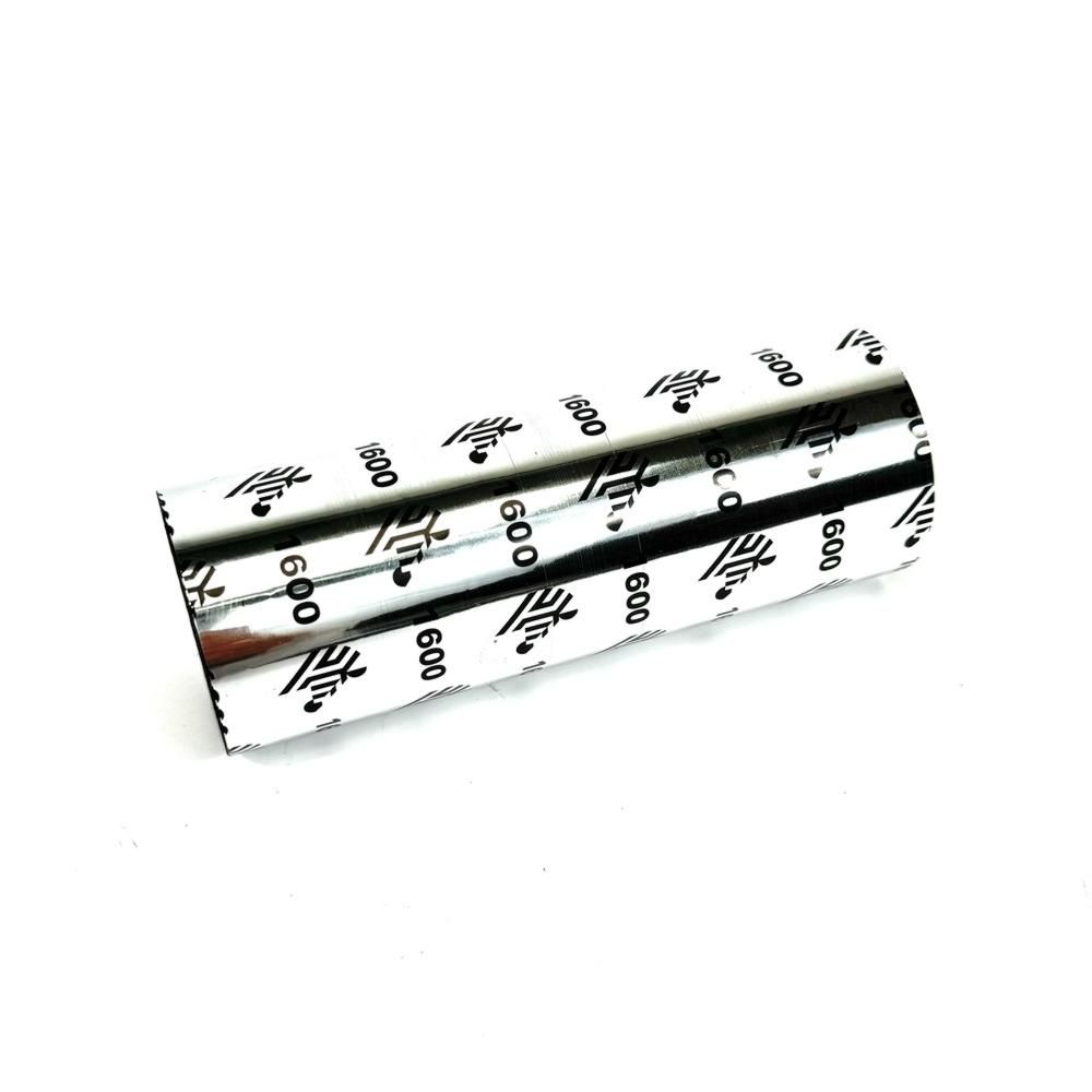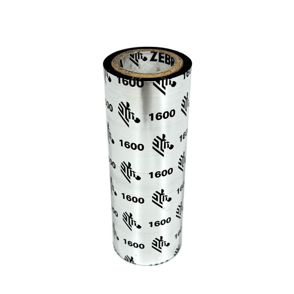-Echantillon de ruban transfert thermique Zebra, couleur noir en cire qualité 1600 format 110mm x 50m en mandrin de 25.4mm.