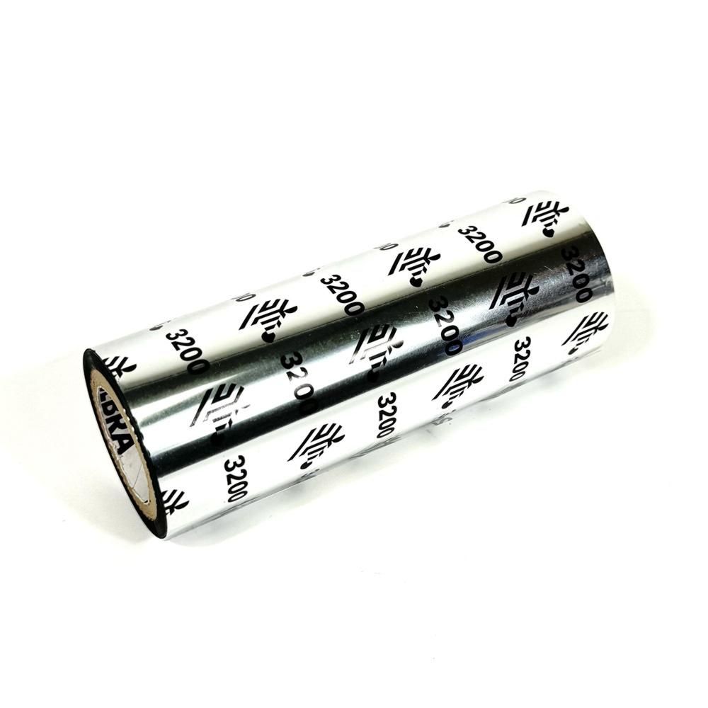 -Echantillon de ruban transfert thermique Zebra, couleur noir en cire-résine qualité 3200 format 110mm x 50m en mandrin de 25.4mm.