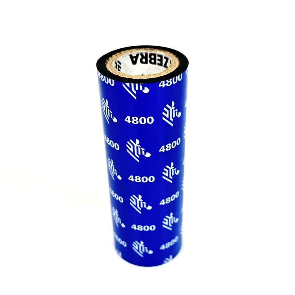 -Echantillon de ruban transfert thermique Zebra, couleur noir en résine qualité 4800 format 110mm x 50m en mandrin de 25.4mm.