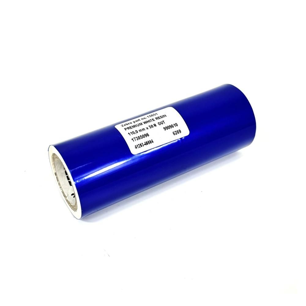-Echantillon de ruban transfert thermique Zebra, couleur noir en résine qualité Premium White format 110mm x 50m en mandrin de 25.4mm.