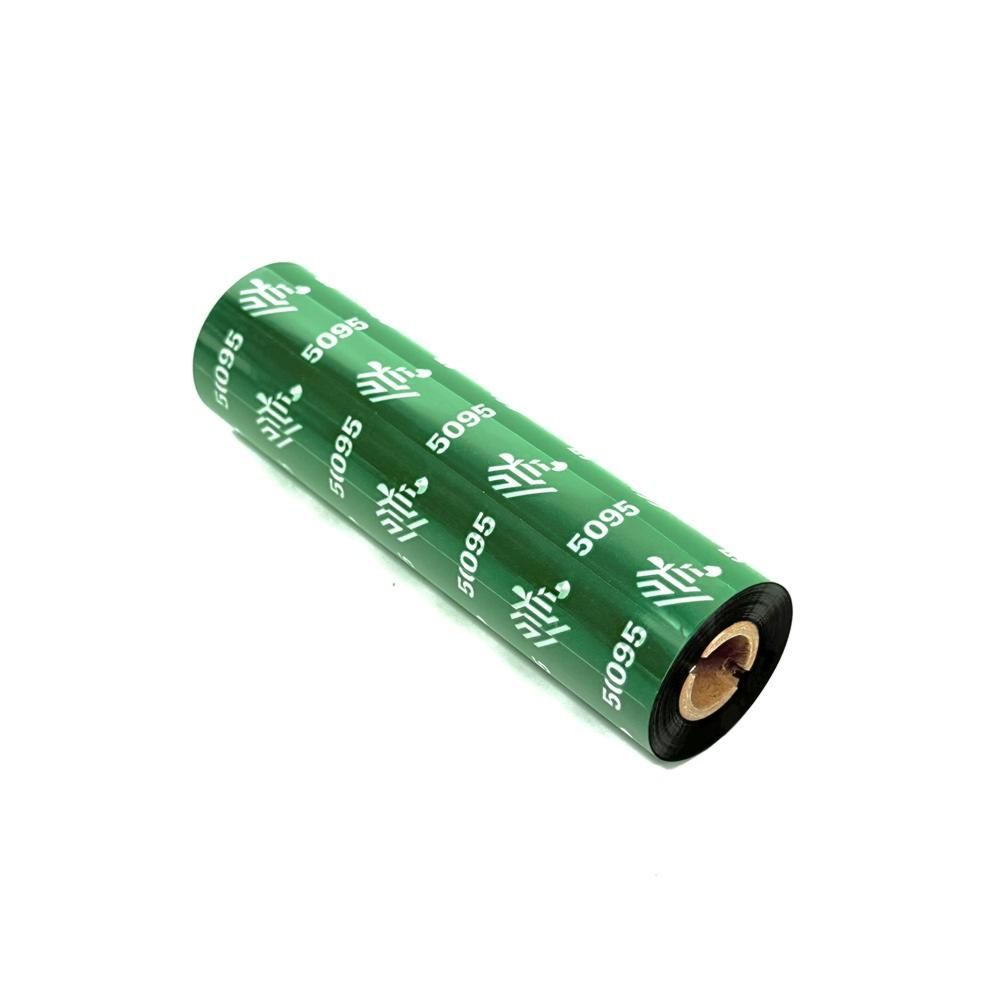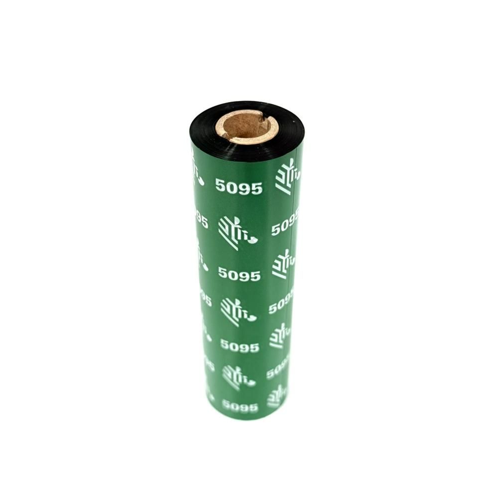 -Echantillon de ruban transfert thermique Zebra, couleur noir en résine qualité 5095 format 110mm x 74m en mandrin de 12.7mm.