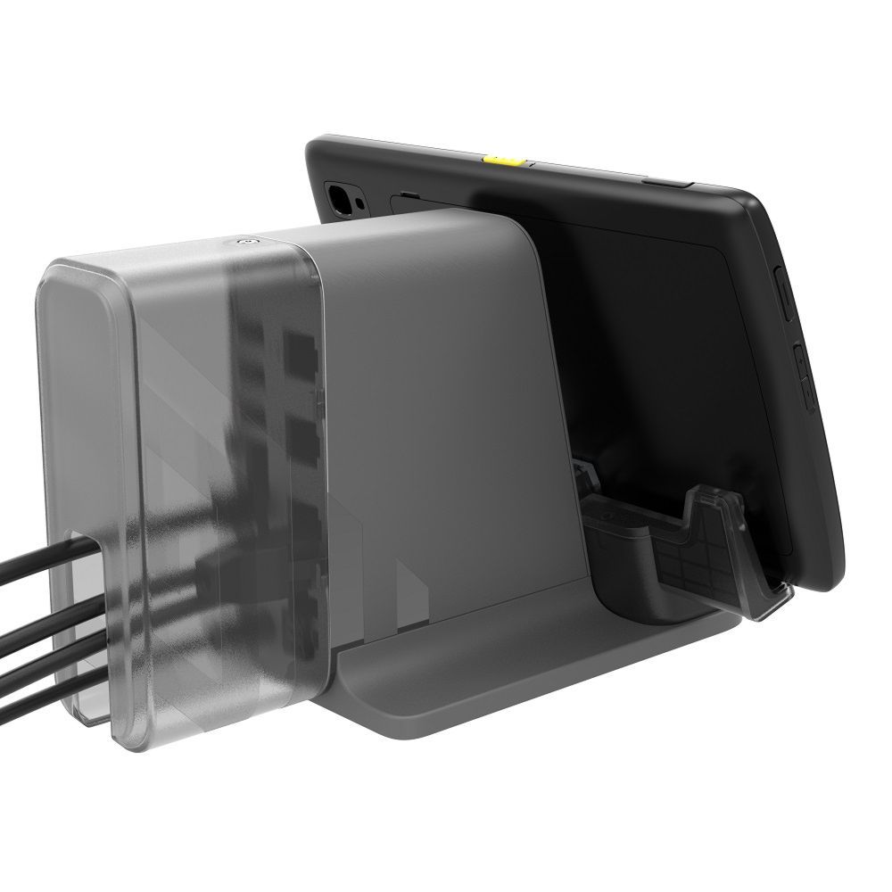 -ET4X Connect Cradle (Workstation FOR POS), permet de connecter une tablette (8" et 10") à un moniteur externe et à plusieurs périphériques, comprend des ports HDMI, Ethernet, une prise casque 3,5 mm et USB-A (x4). Nécessite une ET4X, une alimentation PWR-BGA12V50W0WW, un cordon d'alimentation CBL-DC-388A2-01 et un cordon d'alimentation CA mis à la terre spécifique au pays, vendus séparément.
