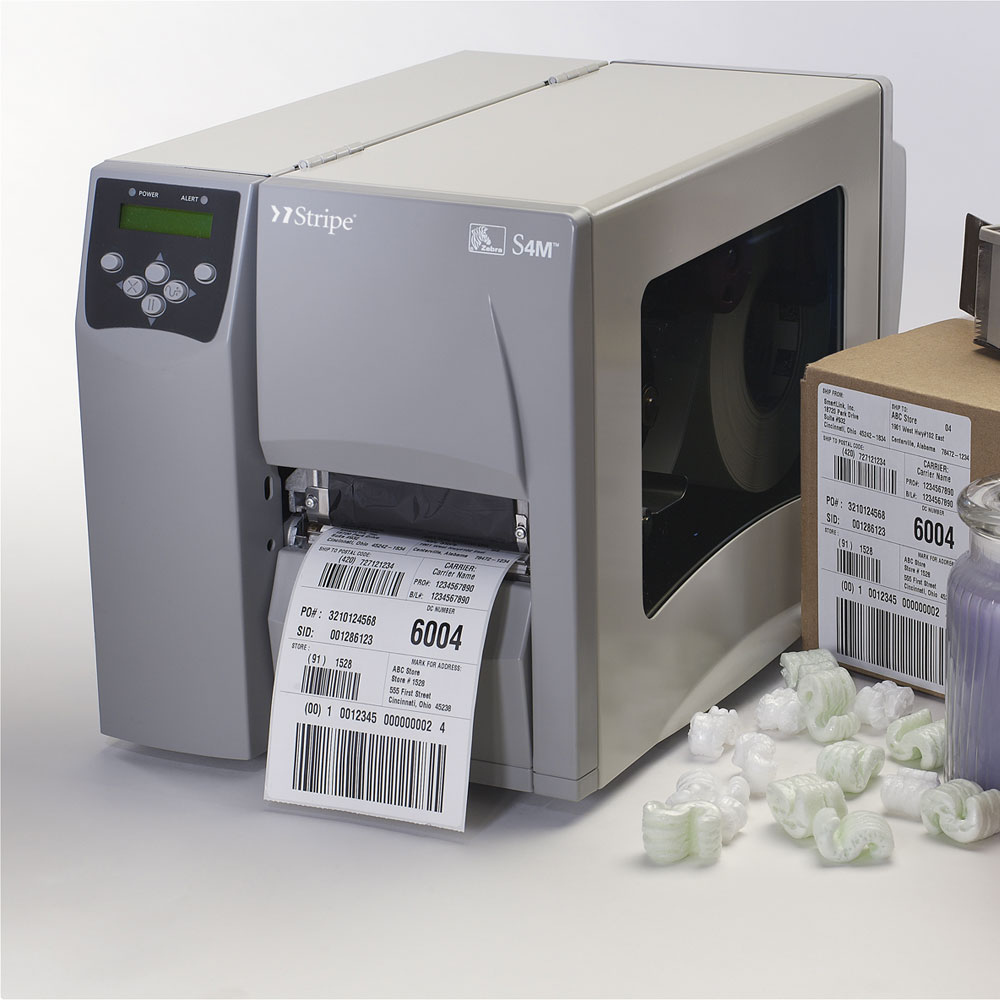 -Imprimante étiquette industrielle Zebra S4M, langage EPL, direct thermique en 203 dpi et 104 mm de largeur d’impression, 64Mo de mémoire flash avec Zebranet interne 10/100 V2 et option RTC (Real Time Clock).
